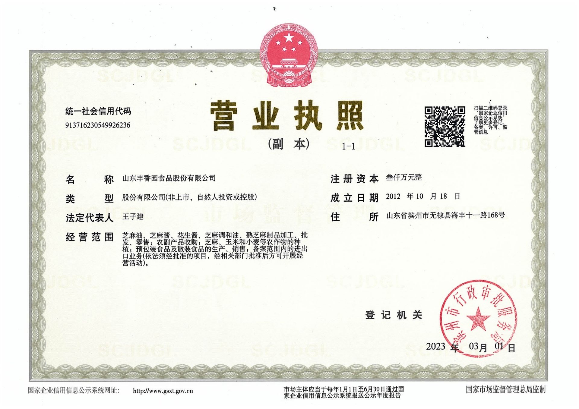 山東豐香園食品股份有限公司位于無棣縣西城工業(yè)園,成立于2012年,注冊資本3000萬元,員工60多人,年銷售收入8000多萬元,是“國家高新技術企業(yè)”、“中國好糧油”示范企業(yè)、“食安山東”示范生產加工企業(yè),公司集綠色、有機芝麻食品標準化、生產加工、研發(fā)、出口銷售為一體的山東省農業(yè)產業(yè)化“重點龍頭企業(yè)”。        公司獲得HACCP國際質量體系認證、ISO9001:2015質量管理體系認證,產品獲得美國FDA認證、美國、歐盟有機食品認證、英國BRC體系認證、A級綠色食品認證、GB國標有機食品認證。        公司主要產品有芝麻油、芝麻醬、花生醬、芝麻粉和烘焙芝麻、兒童芝麻食品系列等六大種類上百個品種,產品出口美國、日本、韓國、新加坡、俄羅斯、澳大利亞、美國、等30多個國家。2018-2019年連續(xù)兩年芝麻食品出口量排名山東省第三位、濱州市第一位。        山東豐香園食品股份有限公司是國家級高新技術企業(yè),建有省級“一企一技術”研發(fā)中心、市級企業(yè)技術中心和市級工程實驗室、市級工程技術中心等多個創(chuàng)新平臺,擁有發(fā)明專利2項,實用新型專利21項,先后獲得省級“專精特新”中小企業(yè)、市級農業(yè)產業(yè)化聯(lián)合體、科技型中小企業(yè)、濱州市級瞪羚企業(yè)、市級“一企一技術”創(chuàng)新企業(yè)和濱州市新興產業(yè)“白名單”企業(yè)等榮譽稱號。